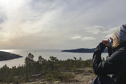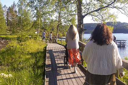 Nature path and outdoor grilling area on headland, allowing wheelchair access. The ramp follows the coastline in the former sawmill community, photos illustrating the bustling activities of ancient times. From Måviken a scenic but demanding path over shingle fields and steep rocky ground takes you to Bredviksstugan.